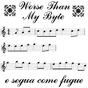 'Worse Than My Byte'![]() I have posted two versions of the fugue on the 'MacJams' site (which showcases home-made computer music): A version with rhythm backing And one without. You can see a list of my other posted music items at MacJams here. Posted: Mon - November 20, 2006 at 10:36 AM by Roger Wilmut |